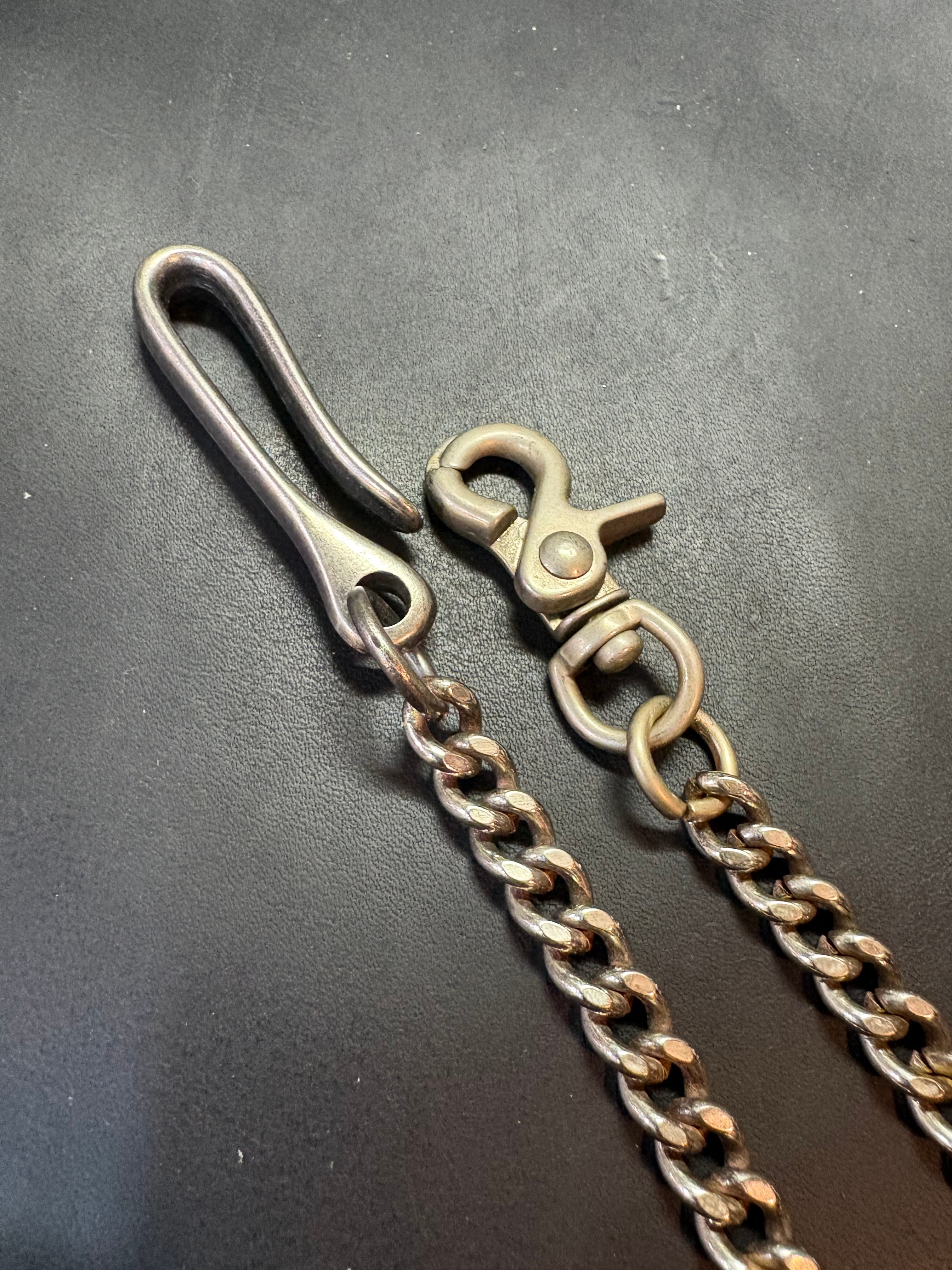※ニッケルのエイジングには個体差があり、地の真鍮色が強く出てる場合や、サビが出ている場合がございますが、雰囲気として楽しんで頂けたら幸いです。また、3枚目の写真のベルト及びウォレットは付属しません。