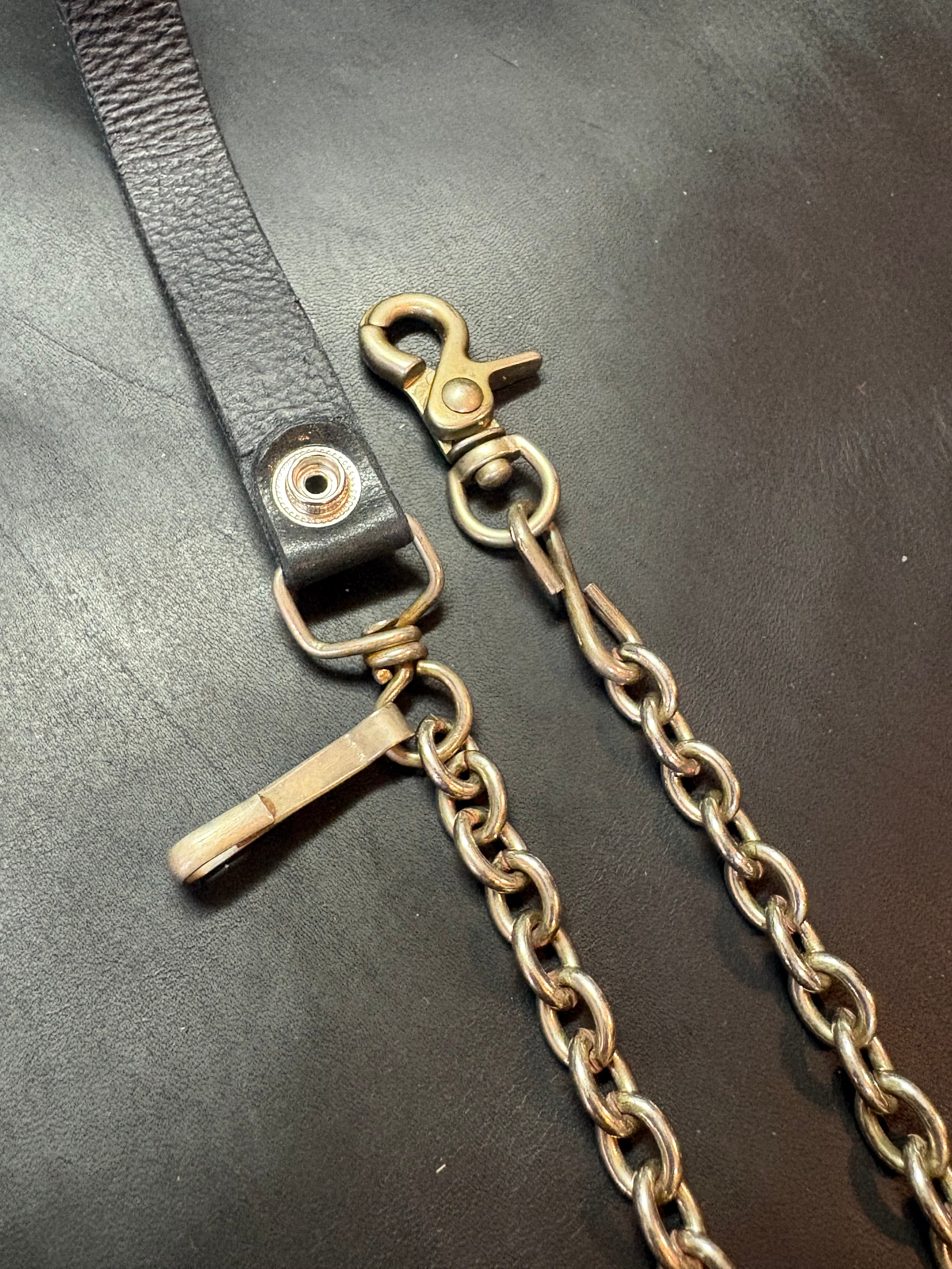 キーホルダーとチェーンを繋ぐツイスト金具やS字金具を使用しビンテージライクに仕上げました。